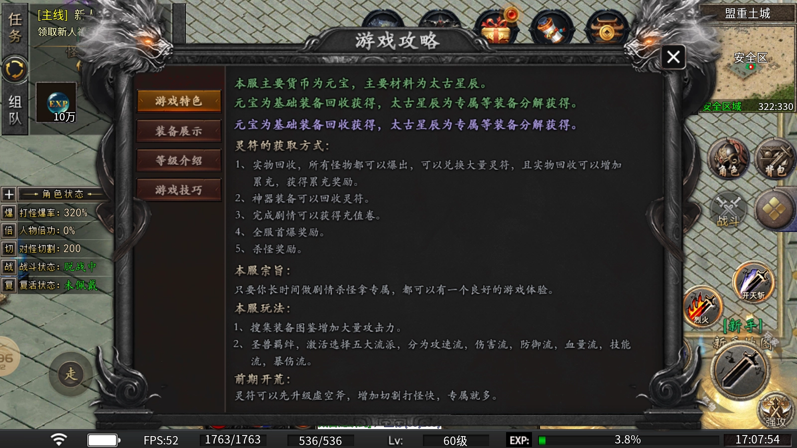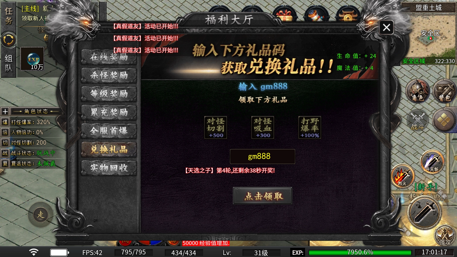 白怪BOSS有几率掉落装备神器,遇到白怪就打,它们通常刷新在后面的地图。装备神器能合成圣体神器,圣体神器带有超强buff。