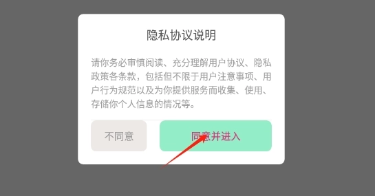 1、下载软件之后,各位需要根据系统提示,提供隐私服务。