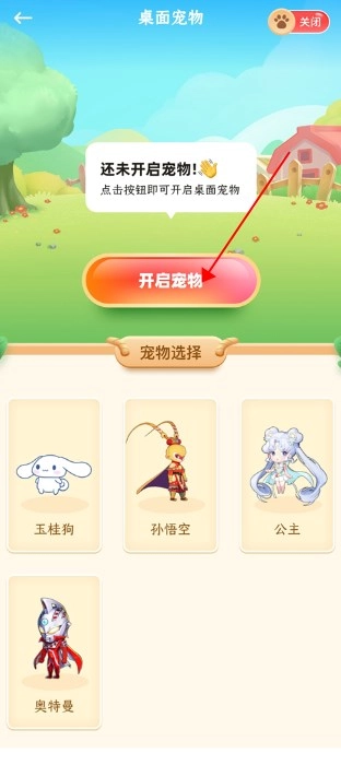 点击开启你喜欢的宠物按键。