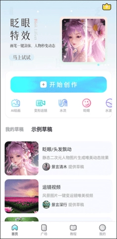 接着进入首页,能看到不少热门特效,大家点击“开始创作”按钮就行啦。