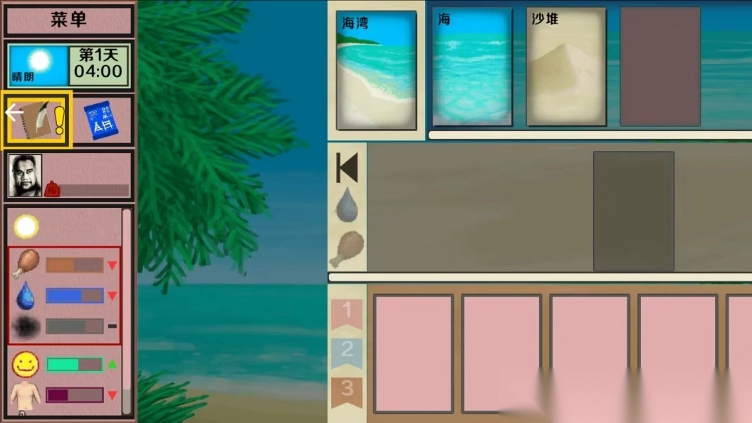 2、探索与制作平衡:分配卡牌次数同步推进探索(如 “探索海湾”)与工具制作(如 “棕榈叶容器”),避免资源断档。