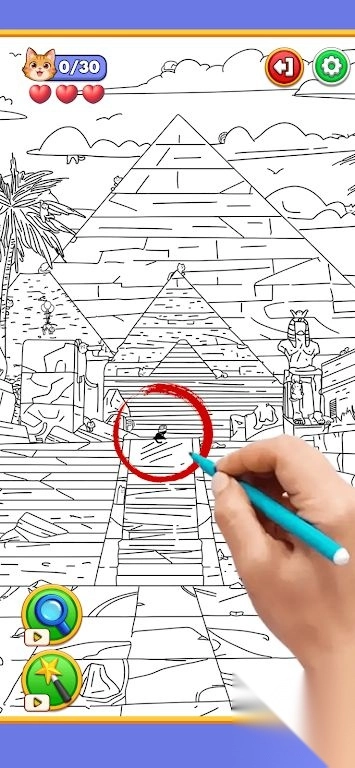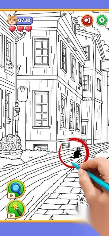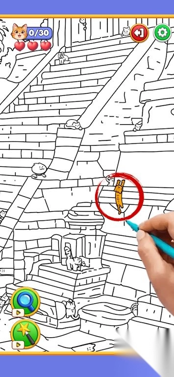 1.双指放大画面能更清晰查看复杂区域,许多猫咪会缩微成简笔画线条的一部分,需贴近屏幕细看。