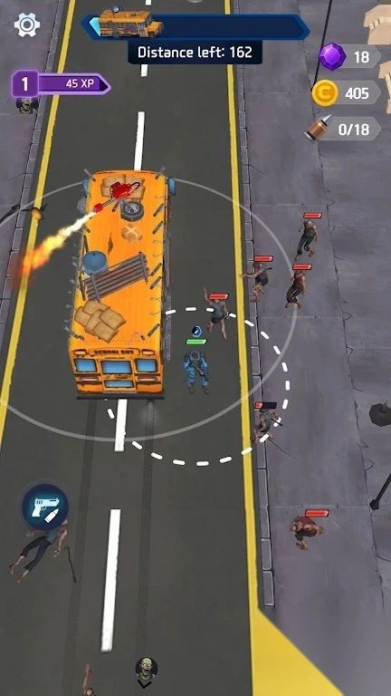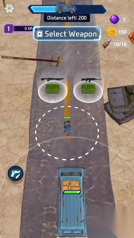 2.观察道路上的僵尸分布,避免被包围,优先清理挡路的僵尸,保证车辆顺利前进。