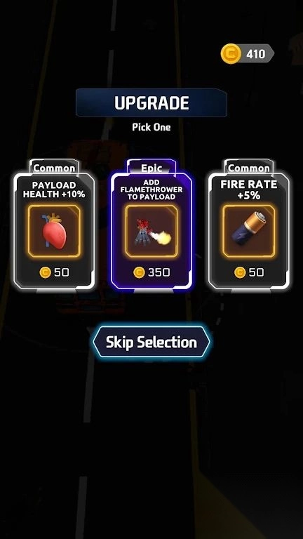 3.道路上会随机出现武器,拾取后可增强攻击能力。