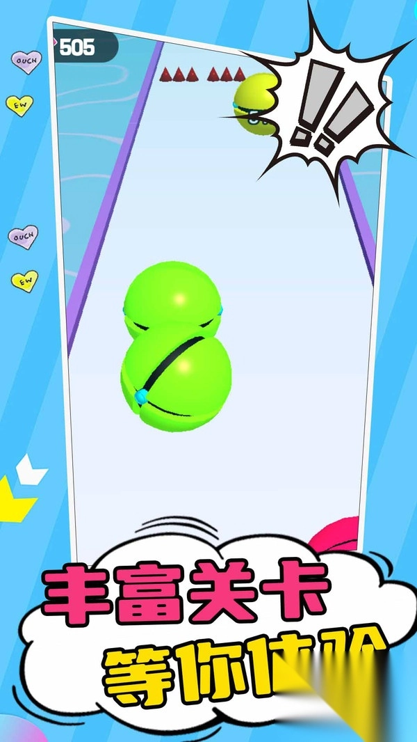 2. 玩家凭借巧妙操作,能使小球于赛道上自如跳跃,避开障碍,吞食其他小球,完成华丽蜕变,促使小球体型持续壮大。