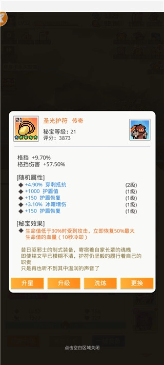 7、关于秘宝洗练,建议优先洗出增加护盾的属性,其次是血量,再接着是攻击。需要注意的是,可能有些人会忘记进行洗练操作。