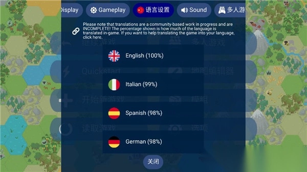 《文明帝国(Unciv)》是一款带来帝国建设体验的模拟经营类手游。它体积小巧,支持多种国家语言,最多可容纳24位玩家同场混战,玩家能与朋友们尽情激战直至天明。在游戏里,玩家要在这片土地上构建属于自己的帝国,依据作战策略招募并训练士兵,实现完美的作战搭配,与各方势力展开争斗,抢夺周边新地盘,持续扩充自己帝国的实力,从而让自己的帝国称霸天下!