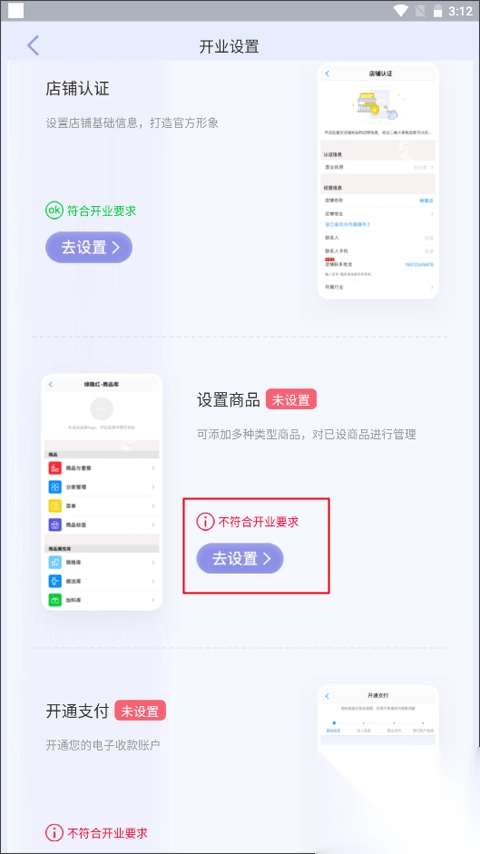1. 在主界面的右上方,找到并选择“开业设置”。这里面的基本功能涵盖了商品设置,接着点击“去设置”。此时,你能看到食物和饮品被分为三种分类,而在右下角则是三个功能按钮。