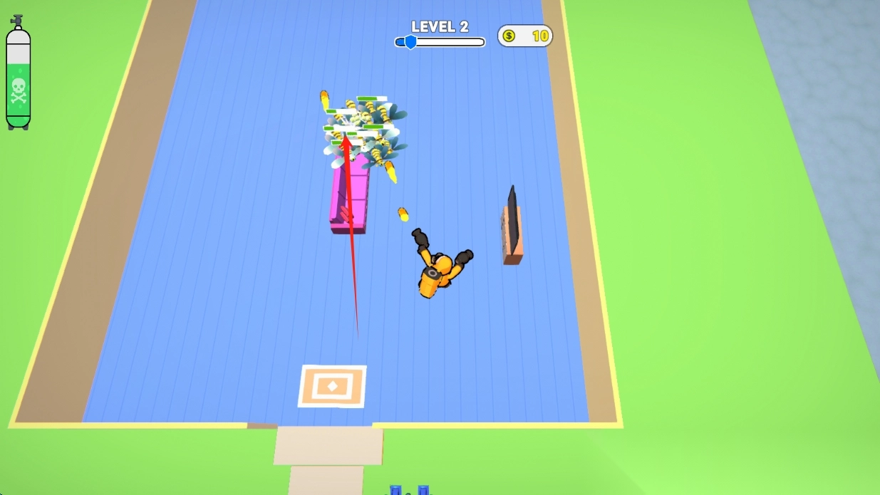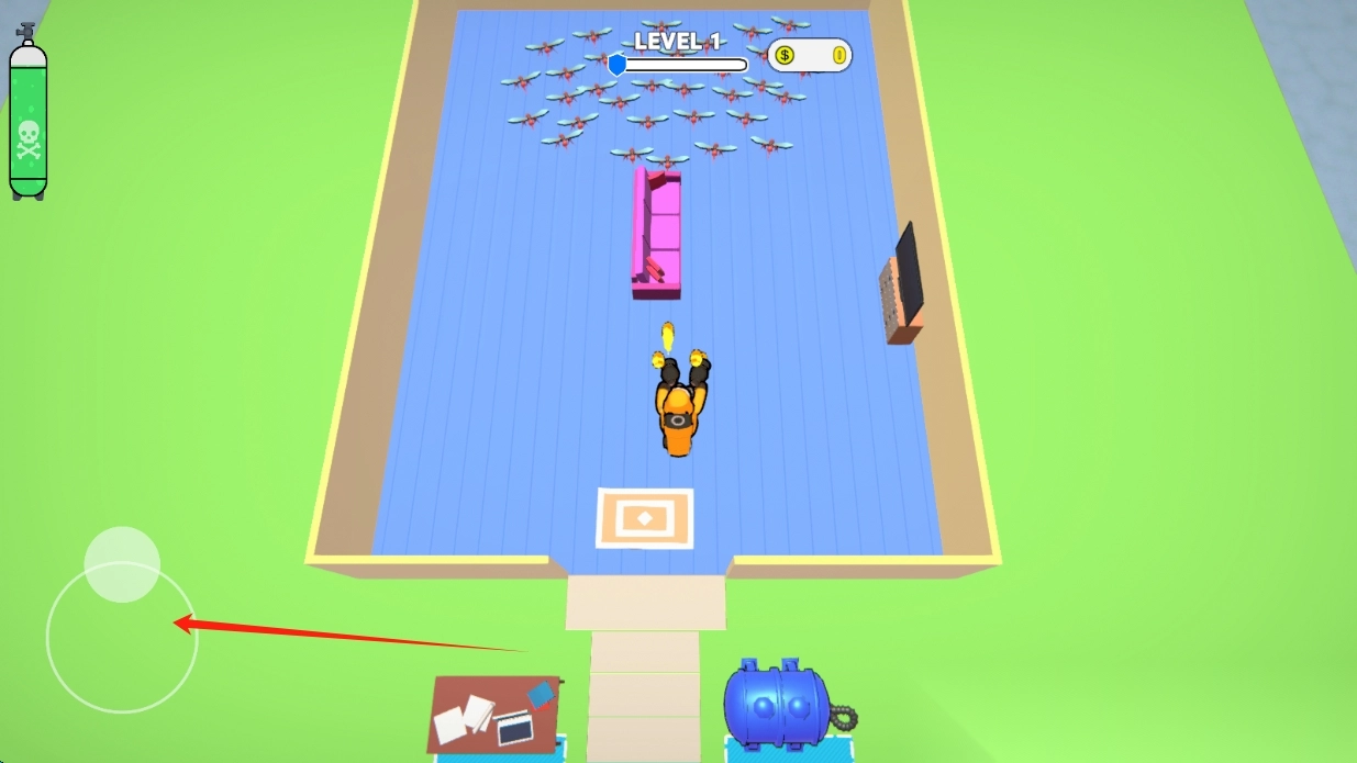 1、拨动轮盘移动人物,利用连续完成高难度操作触发"杀虫达人"状态,通过暂停功能调整工具与策略。