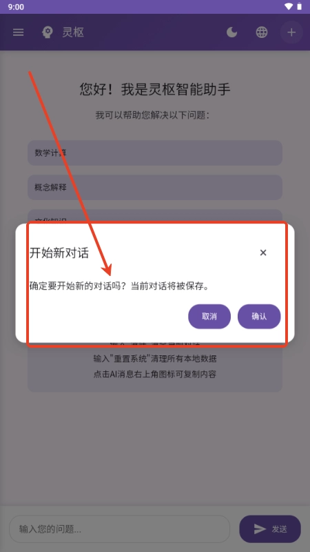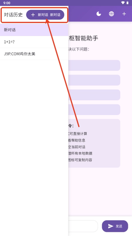 2、通过该按钮,您可以创建并开始新对话;