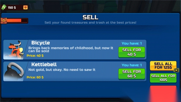 挖掘到的宝藏,玩家可在游戏商店中出售,从而兑换成金币。这些金币将为玩家提供重要的资金支持,助力玩家提升挖掘效率,解锁更为强大的工具。