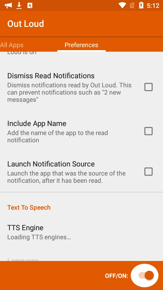 2、在Out Loud运行时,能够开启或关闭持续通知功能。