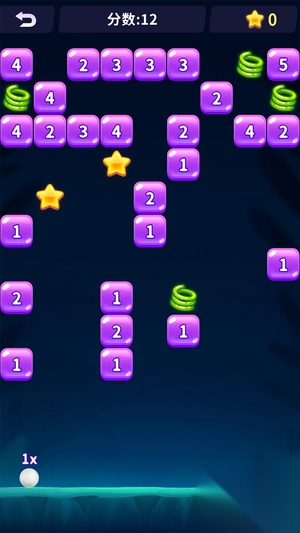 1. 玩家以拖拽弹珠发射器的方式来调整角度,随后松开手指,让弹珠发射出去以击碎砖块。