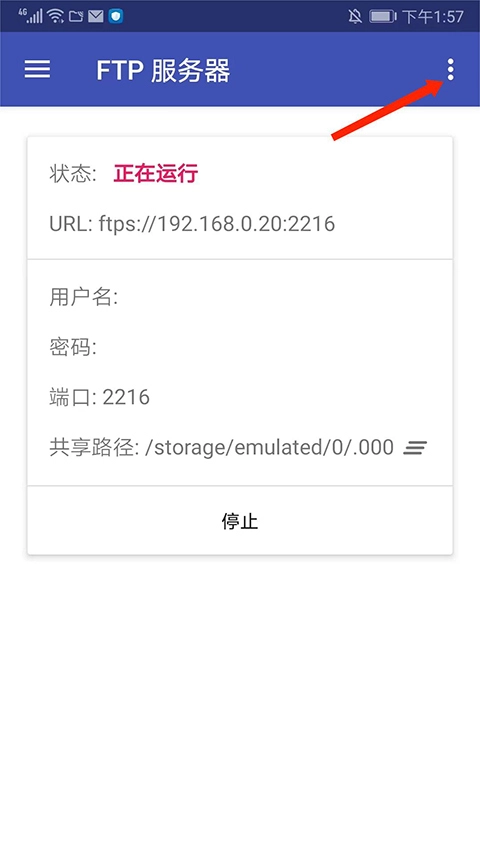 3、当进入FTP界面后,点击右上角的【扩展菜单】(即三点图标)