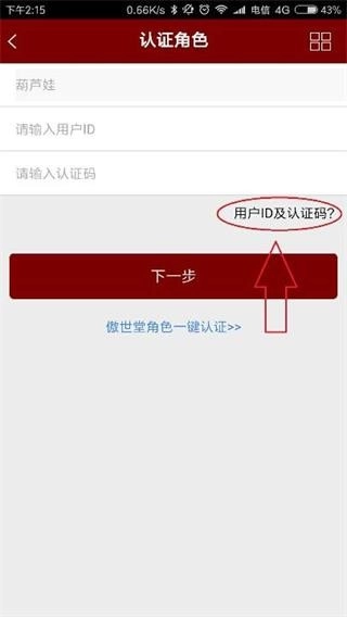4、在此界面输入您的游戏用户id以及认证码,可以点击“用户ID及认证码?”查看游戏中用户ID位置。