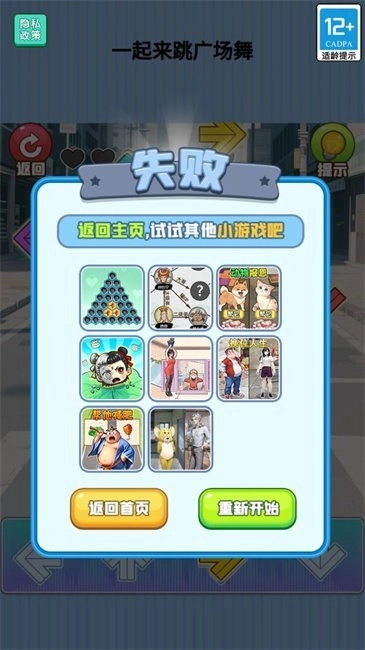 4. 要是挑战失利,你既能够重新开启挑战,也可以返回首页去体验其他游戏。