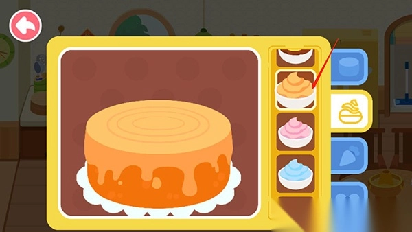 6、点击蛋糕后,就能开启蛋糕DIY之旅。你会得到一个蛋糕胚,借助旁边的道具,制作出一款精美好看的蛋糕。