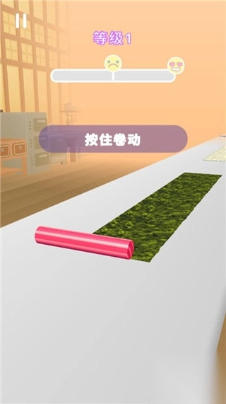 2、进入游戏后,持续按住屏幕,让寿司卷进行滚动;