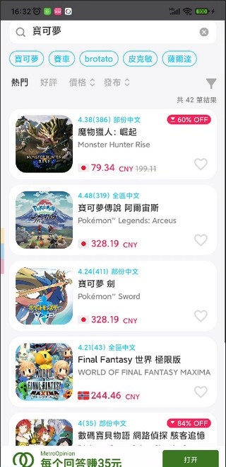4、比如输入宝可梦,就可以查看宝可梦相关的所有游戏折扣情况。