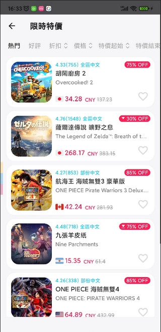 1. 可清晰直观地查看当下特价、折扣力度最大的游戏,还能对比各区域价格并进行货币切换,助您实现超值购买。