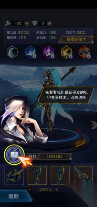 3、完成机甲选择后,点击下方的“切换形态”即可实现变身。此外,这里还提供武器,能用于装扮自己的机甲。