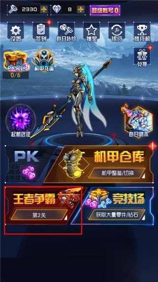 2、新手指导完成后我们先进入机甲仓库,在这里有着大量的机甲可供大家选择,每个机甲需要大家去解锁。