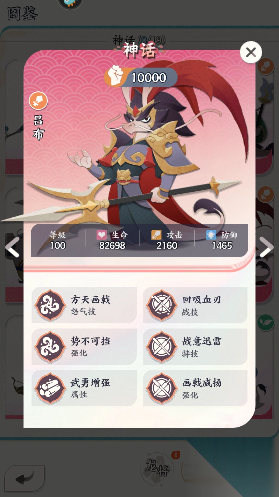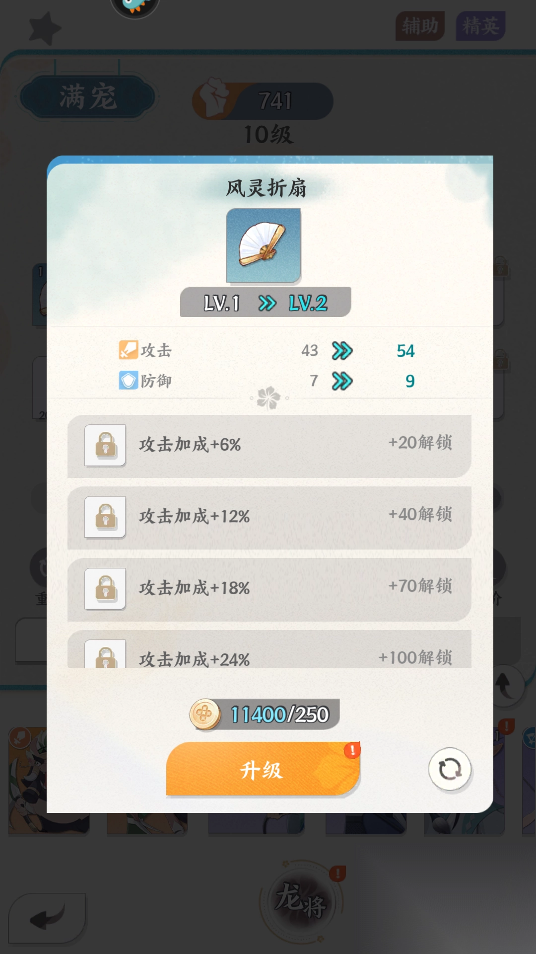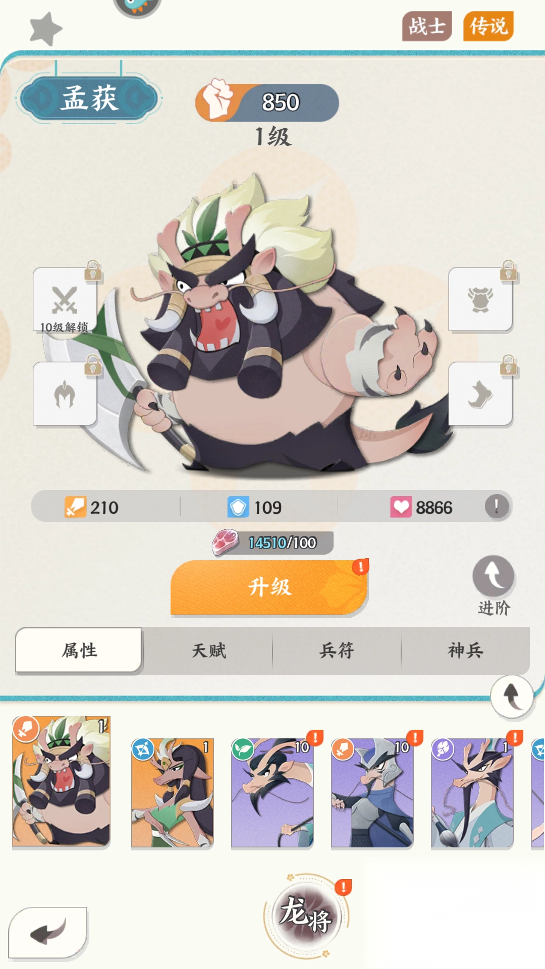 3、点击龙将可以进行升级,升到10级后可以穿戴装备。