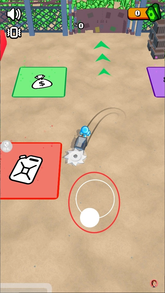 1、操作简单易上手。虚拟摇杆搭配两个功能键即可完成所有操作,收割机自动前进,玩家只需专注转向和技能释放。