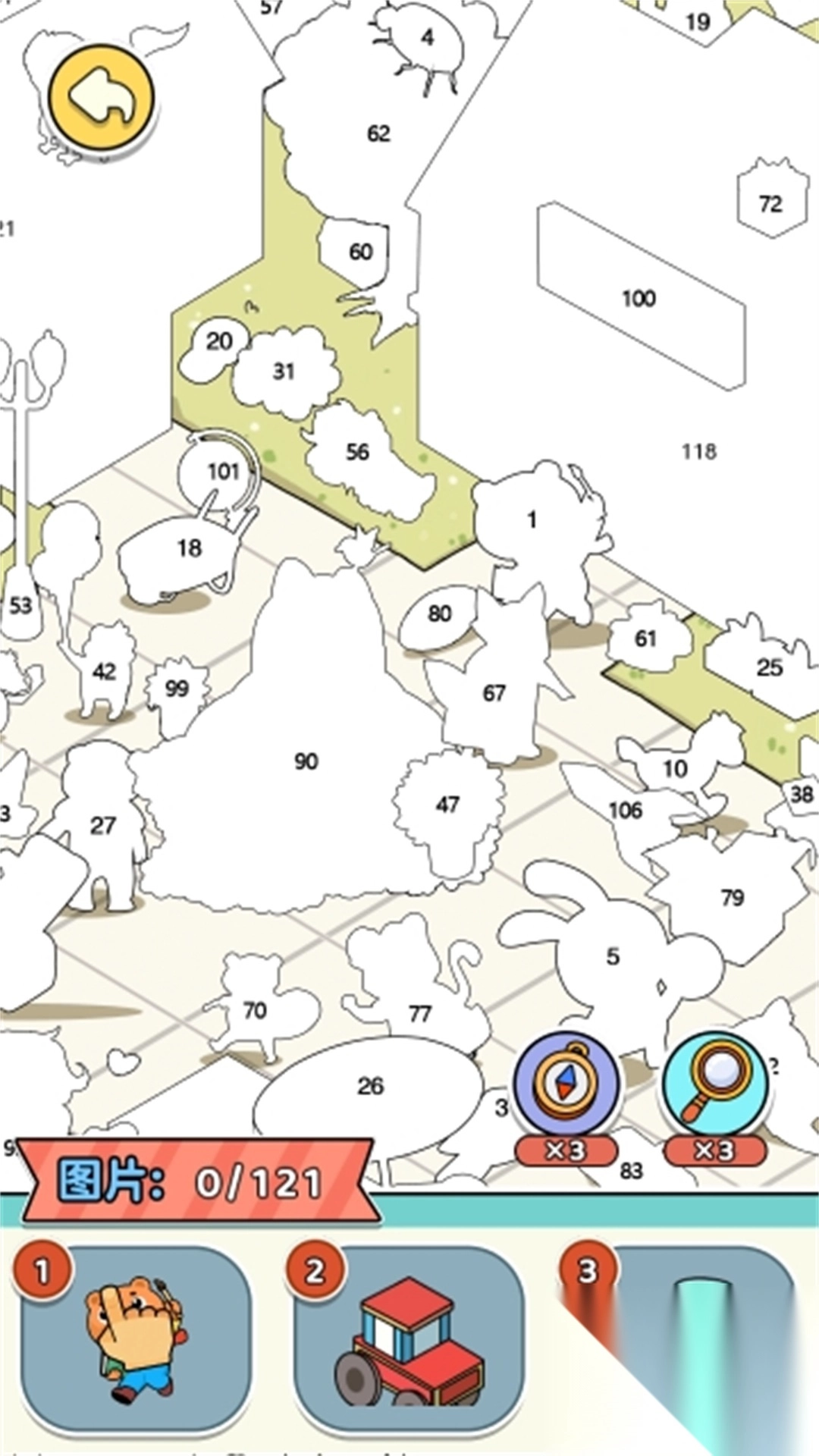 2. 拼图块上标有数字或符号作为提示,玩家要依据场景里的空缺位置,找到并放置与之编号对应的图块。