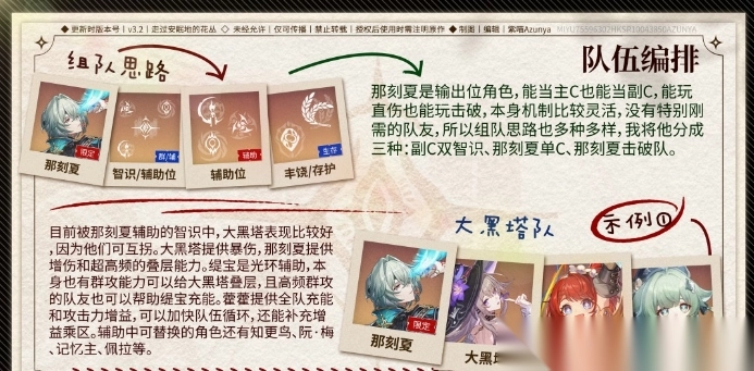 1、组队思路:那刻夏辅助智识角色大黑塔,搭配缇宝(充能)、藿藿(治疗+增攻);二者互助,大黑塔叠暴伤,那刻夏提供增伤与高层数增益。