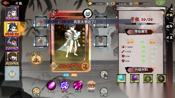 7、别忘了升级角色方便后期闯荡更高难的的关卡。