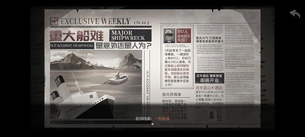 9、在箱子之中隐匿着一张拼图,当把拼图完成后,会得到一张旧海报,这张海报的内容是关于十年前发生的海潮号游轮事故。