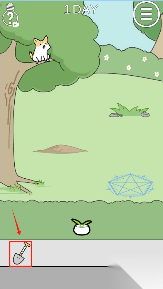 2、点击底部工具栏的铲子图标,选择土地进行挖掘种植。