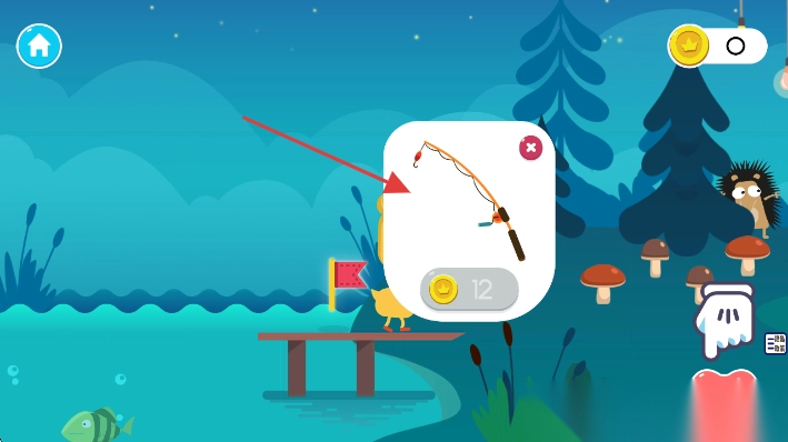 1. 在码头场景弹出的窗口里,点击所展示的钓鱼竿图标(该图标旁标注价格为12金币),花费相应的12金币来购买钓鱼竿,从而解锁钓鱼玩法。