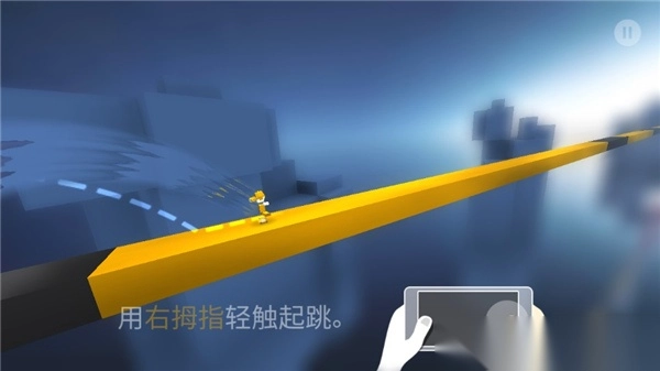 2、跳起之后再用右拇指轻触一下并且长按,这样就能跳得更高且更远,到达跑道上后就能松开。