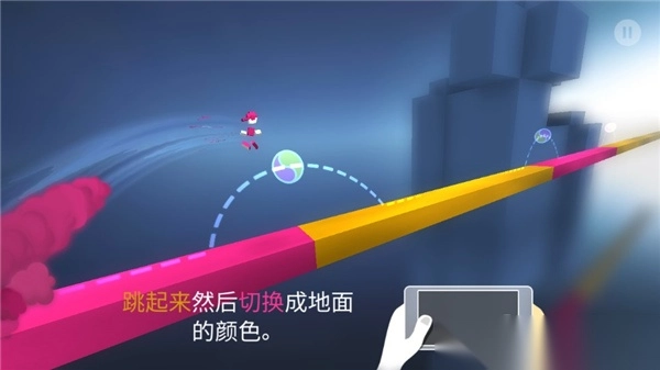 1、游戏中的角色会自动奔跑,玩家无法控制其速度。但玩家若能在跳跃到地面的瞬间快速变色,便可实现提速效果。