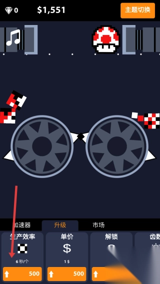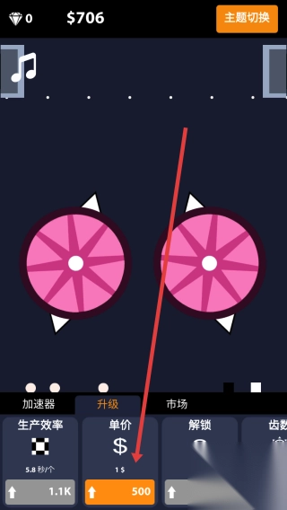3、升级操作:消耗金币(如500)提升“单价”等属性,增加生产收益,推进游戏进度。