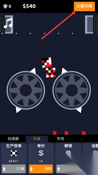 2、主题切换:点击“主题切换”按钮,改变场景或道具外观风格(如粉色轮盘)。