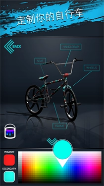 1、设计并组装完全个性化的BMX越野车。从多种车架、车把、车轮和车座中挑选,并喷涂独特车漆,展现个人风采。