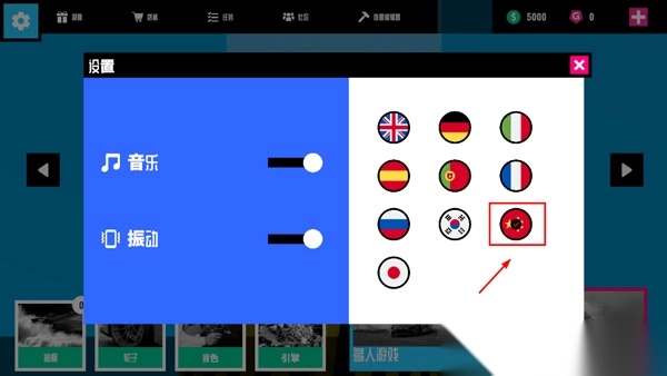 2、在右侧选择中国国旗,然后语言即可切换成简体中文。