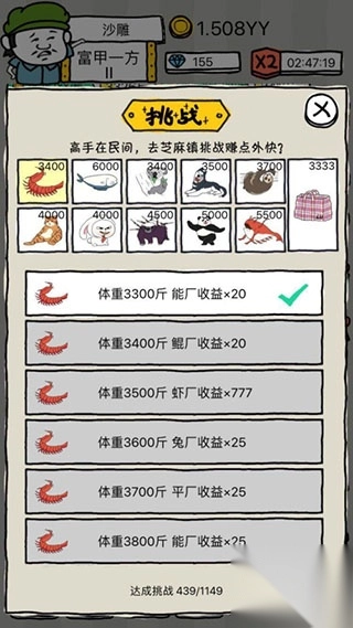 另外,皮皮虾作为最先解锁的品种,但在挑战里的加成却是全品种的!所以除了喂养高级品种,一有闲钱就喂养皮皮虾,一定是个不错的选择。