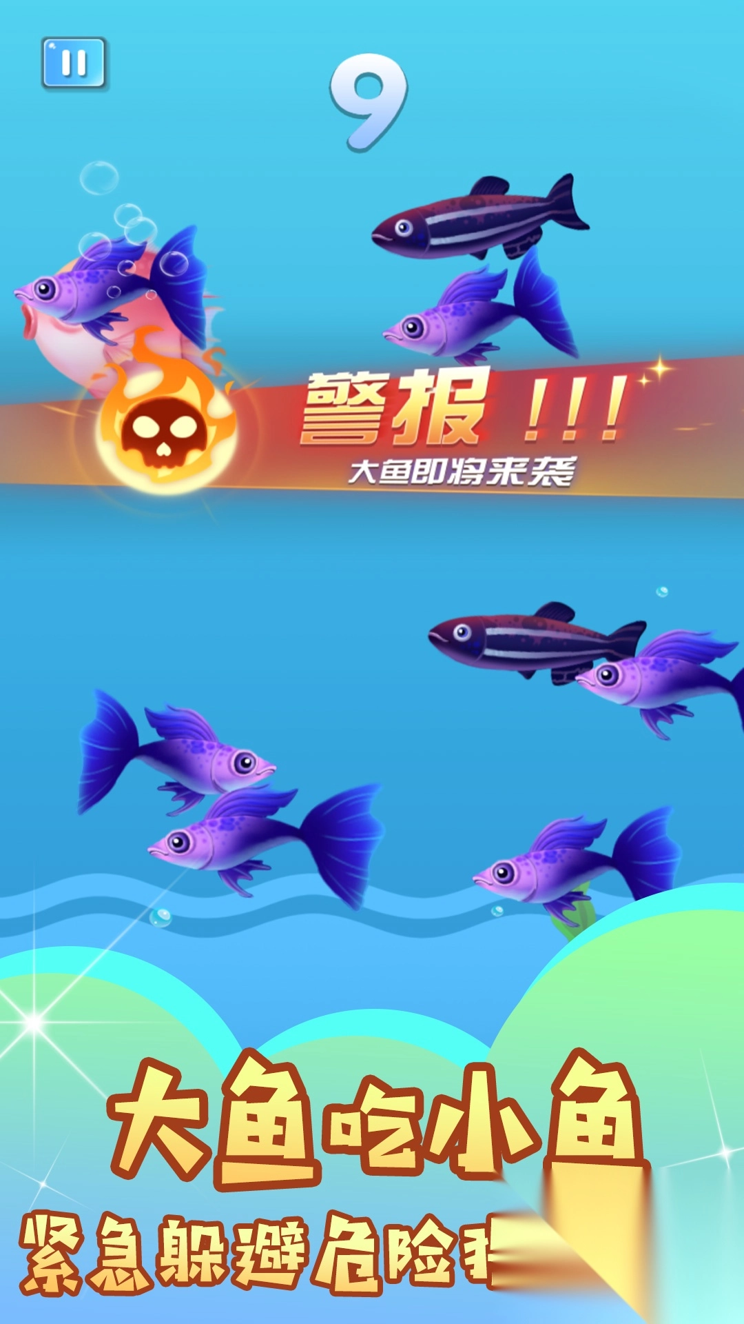 《鱼儿生存大乱斗》是一款充满轻松趣味的海洋生物模拟类游戏。其核心玩法在于,玩家通过操控游戏角色持续进行吞噬,从而开启从一条小小鱼苗逐步成长为顶级掠食者的奇妙历程。在游戏过程中,玩家会亲身经历不同鱼类所面临的生存挑战,依靠捕食实现进化,最终达成称霸海底世界的目标。