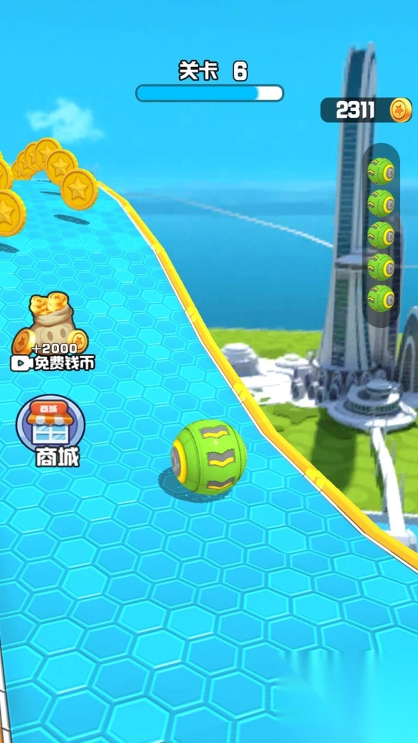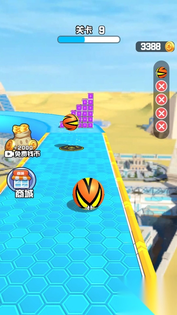 2、关卡中散落着金币和特殊道具,收集后可解锁新球体或捷径;