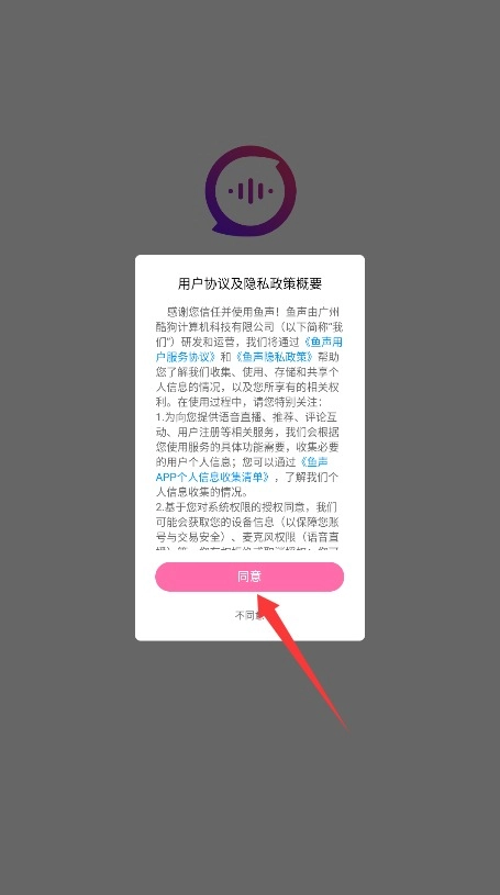 1首次使用时,需阅读平台的服务条款及隐私政策,确认无误后点击“同意”按钮方可进入应用。