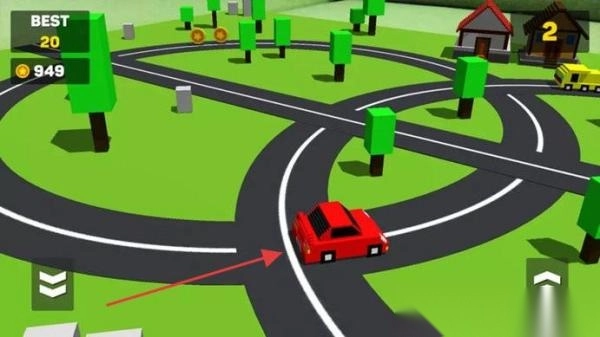 3、回绿色场景,驾红车,走交叉环形路,避黄车,吃金币(949),保“BEST20”,赢奖励。