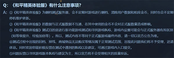 Q : 《和平精英体验服》有什么注意事项?