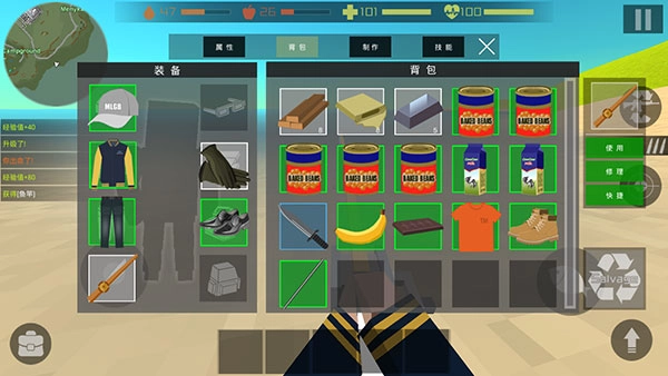 通过分解物品获取材料,用以制作工具、武器以及其他维持生存所需的用品。此外,还能利用鱼竿和鱼饵进行钓鱼活动。