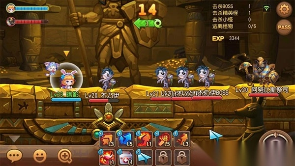 可以看到,我们操纵的角色在中间,左边是精英怪,右边是boss。