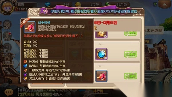 最后说一下大招,由于这里的力度和距离都是玩家手动操控的,不像弹弹堂有公式可以看,稍微远一点就全看手感了,所以在这里要做到弹弹堂的3线合一(散弹)或者TNT的9点合一(大招)是十分困难的,所以还是超级连发比较好用,竞技刷副本也不冲突。