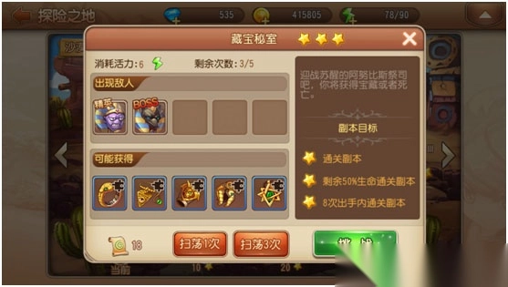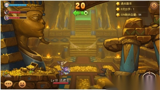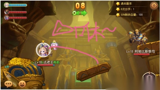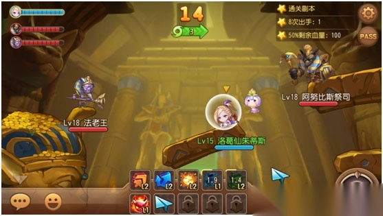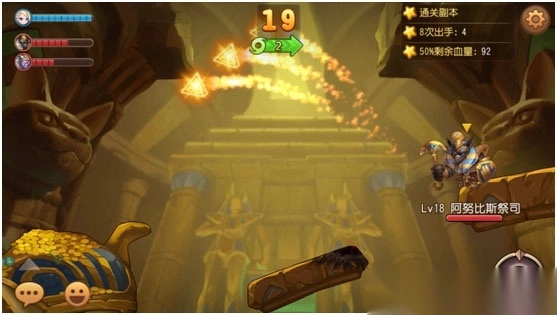 分析该地图,通关并不困难,左边精英怪的血量相比右边boss要少一些,那么优先打精英怪也是一种可以减少伤害的方式,在自己的有效攻击分配合理的情况下,8次出手解决战斗也不是什么难事,关键在于,两个怪物的攻击力都较高,在2V1的情况下,8个回合意味着血量过半是件比较难以完成的事情。